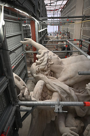 Vue de l'échafaudage au niveau de l'attique.